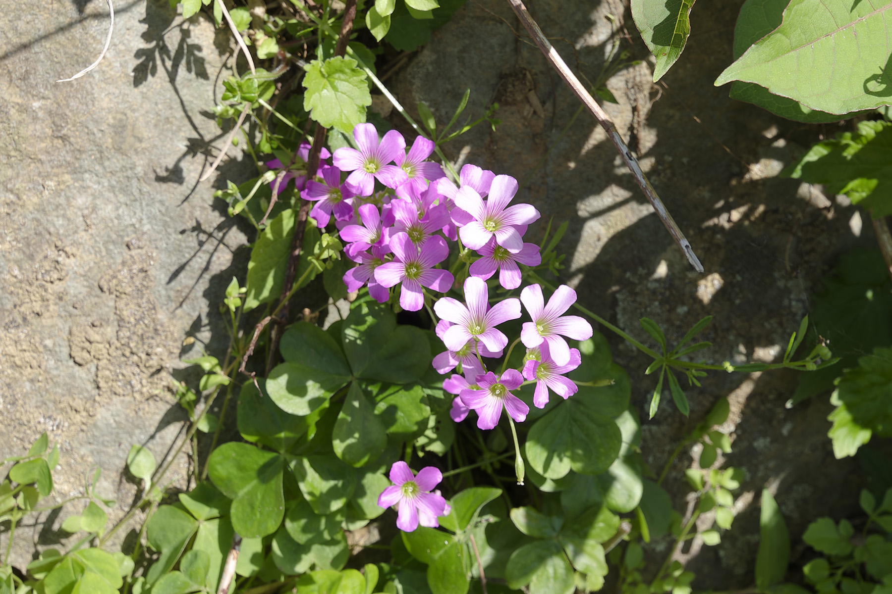 西伊豆・雲見付近に咲いていたムラサキカタバミの花。珍しくもない雑草ですが、先日に黄色いカタバミの花を記事にしたので紫色の方もアップしてみます。(5月4日撮影)