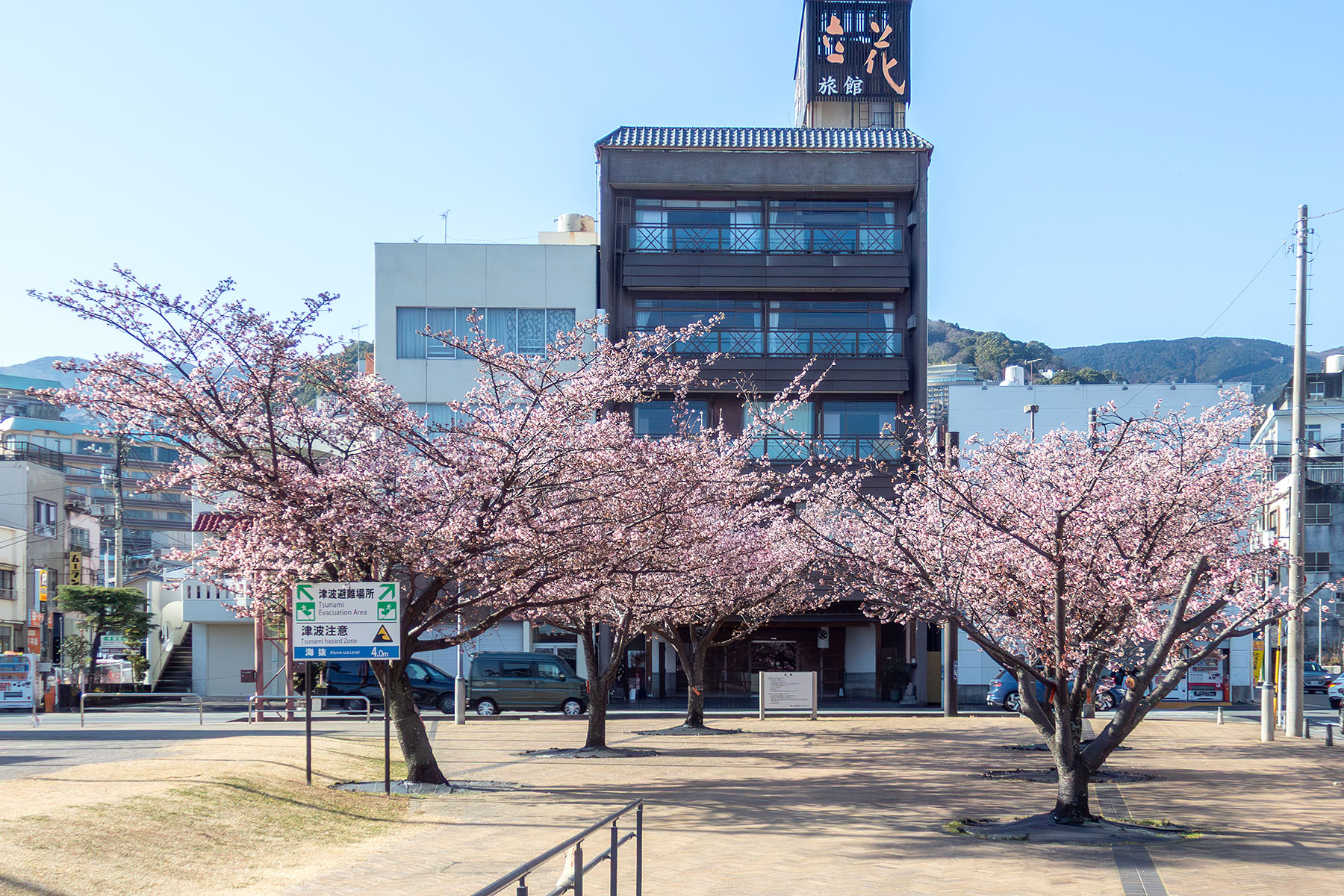 渚小公園は糸川から西へ5分程度歩いた場所にある観光客が少ない公園です。近年、公園が整備され、あたみ桜が多く植栽されたようです。こちらのあたみ桜もの7分咲き程度に開花が進んでいました。ベンチなども整備されているので桜を眺めながらお弁当を食べるのも良さそうです。