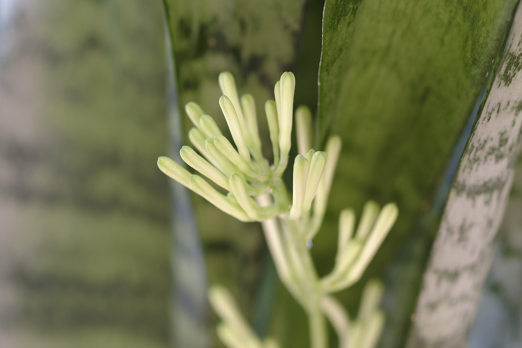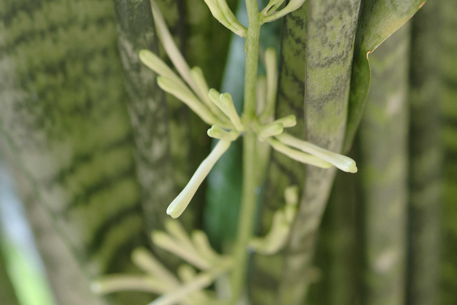 20年近く育てている観葉植物・サンセベリア。今朝、何気なく葉の様子を観察している時にサンセベリアの花のつぼみを発見しました。(7月15日撮影)