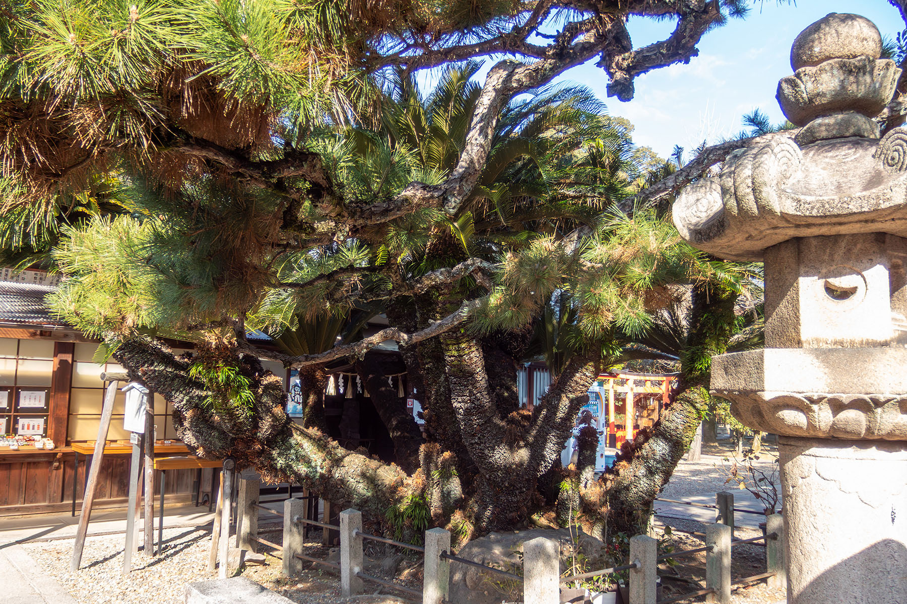 京都市伏見区の御香宮神社を訪れました。桃山御陵駅から徒歩数分、30数年ぶりです。境内を進み本殿前まで来ると左側に南国風の植物がありました。これはソテツです。(2月14日撮影)