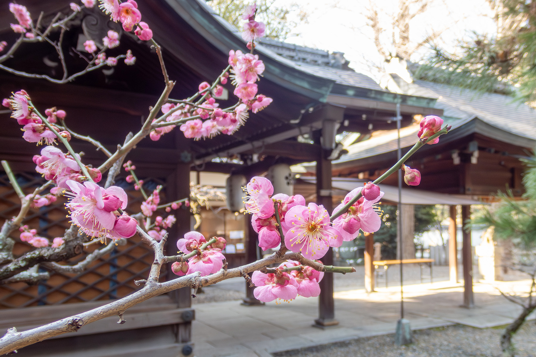 境内では梅の花が咲き始めていました。早咲きの梅はもう見頃を迎えています。この場所では控えめに咲き芳香を漂わせる梅の花が似合います。
