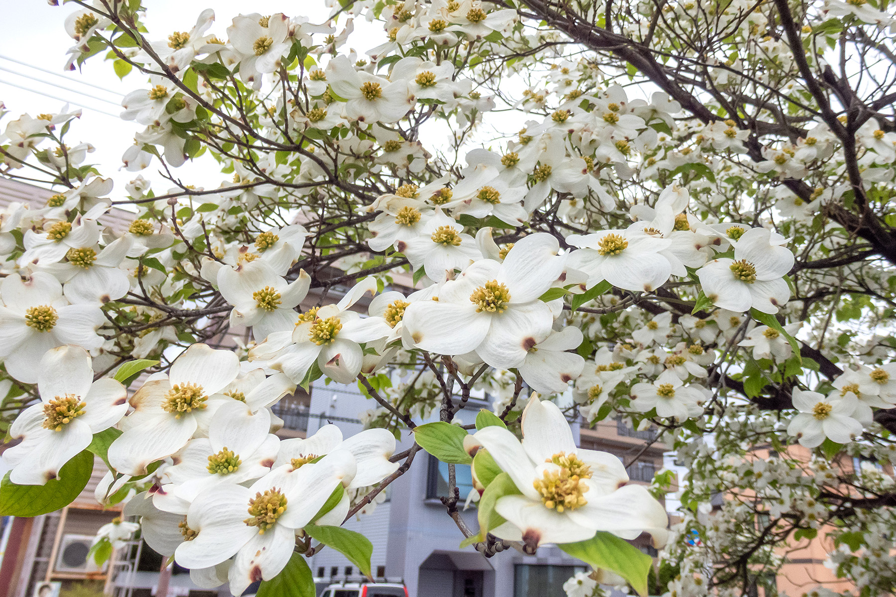 > 沼津 街路樹のハナミズキの花 2025