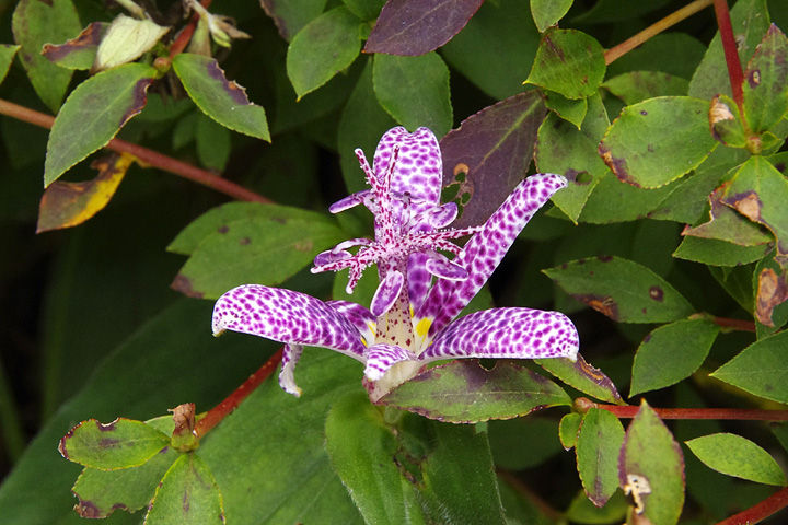 ホトトギスはユリ科ホトトギス属の多年草で日本固有種、主に太平洋側の山地に自生します。「ホトトギス」という名前は、鳥のホトトギスの胸の模様に似ていることから名付けられたそうです。