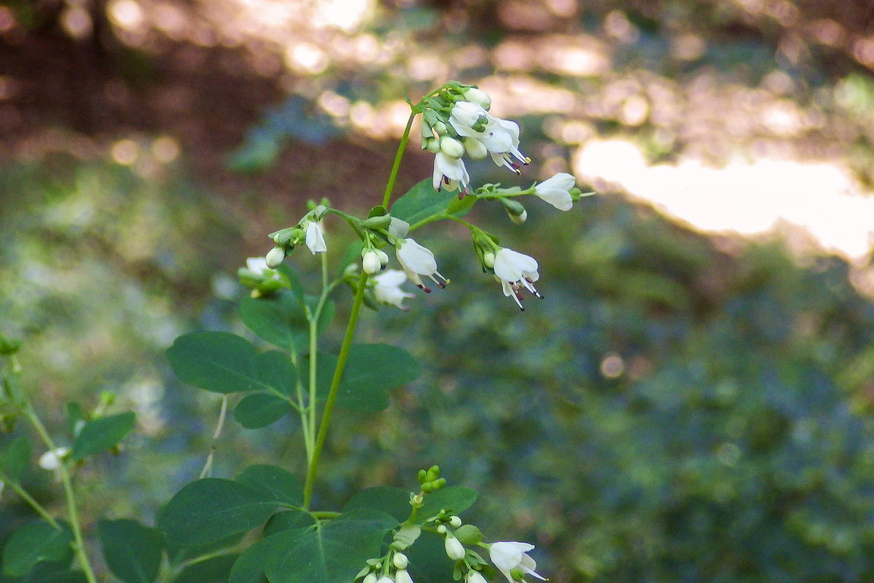 花期は8月〜10月頃、花が咲き終わると3〜4個に分果した緑色の実を付けます。これから次々と開花しそうなので林道を歩く機会があれば観察してみてください。