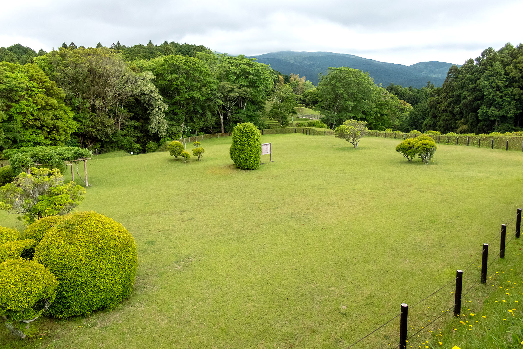 久しぶりに訪れた山中城址はとてもきれいに整備されていて驚きました。この写真は西の丸エリアです。曇天でしたが広々としてとても気持ちが良かったです。駐車場は、入口に近い場所はほぼ満車の状態が続いていました。ナンバーを見ると半分以上が県外ナンバーです。日本史や山城ファンだけでなく、軽いハイキングを楽しむ人も多く見られました。もともと険しい山城なので滑りにくいハイキングシューズでお出かけください。