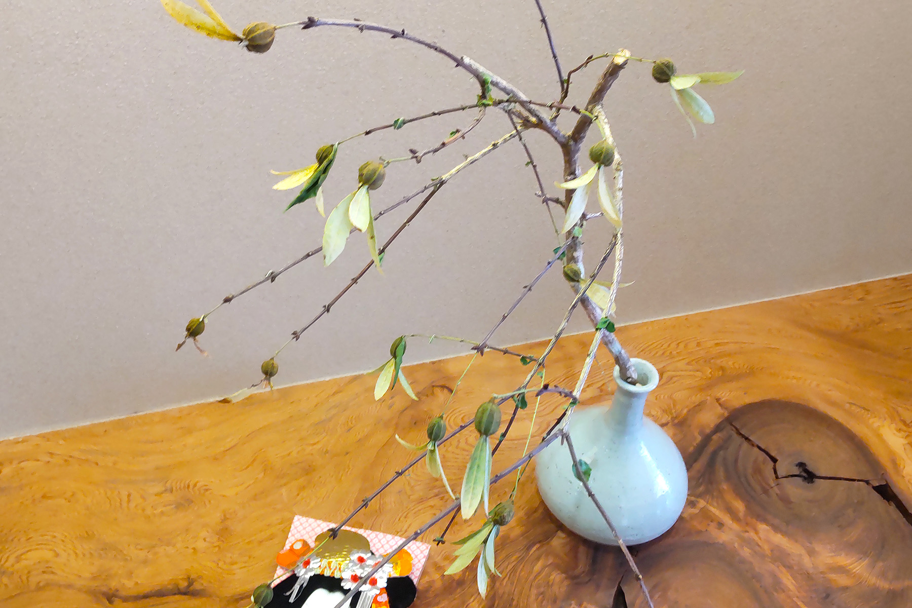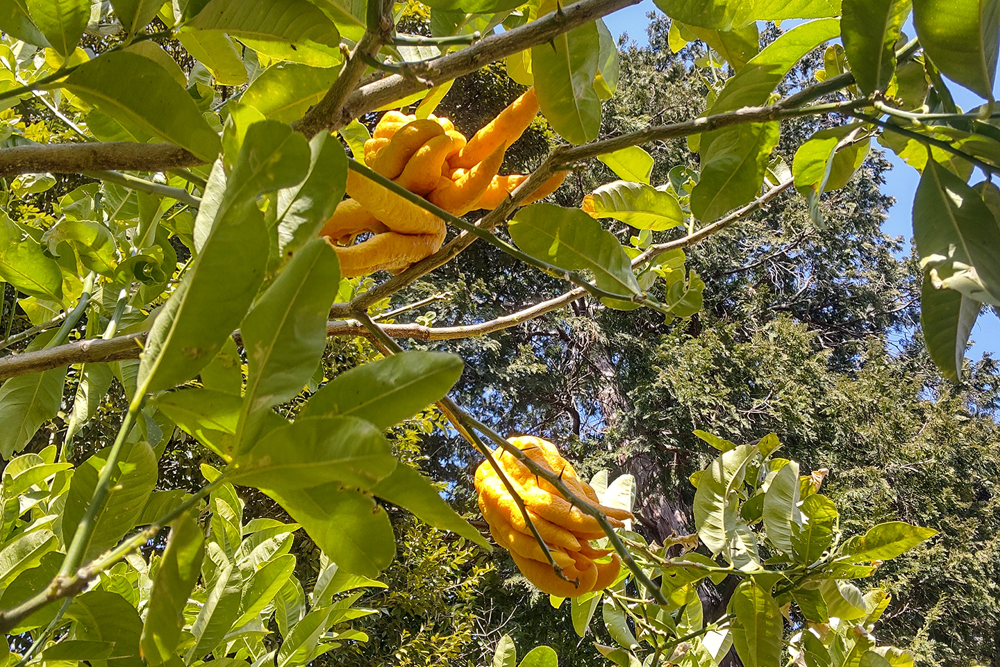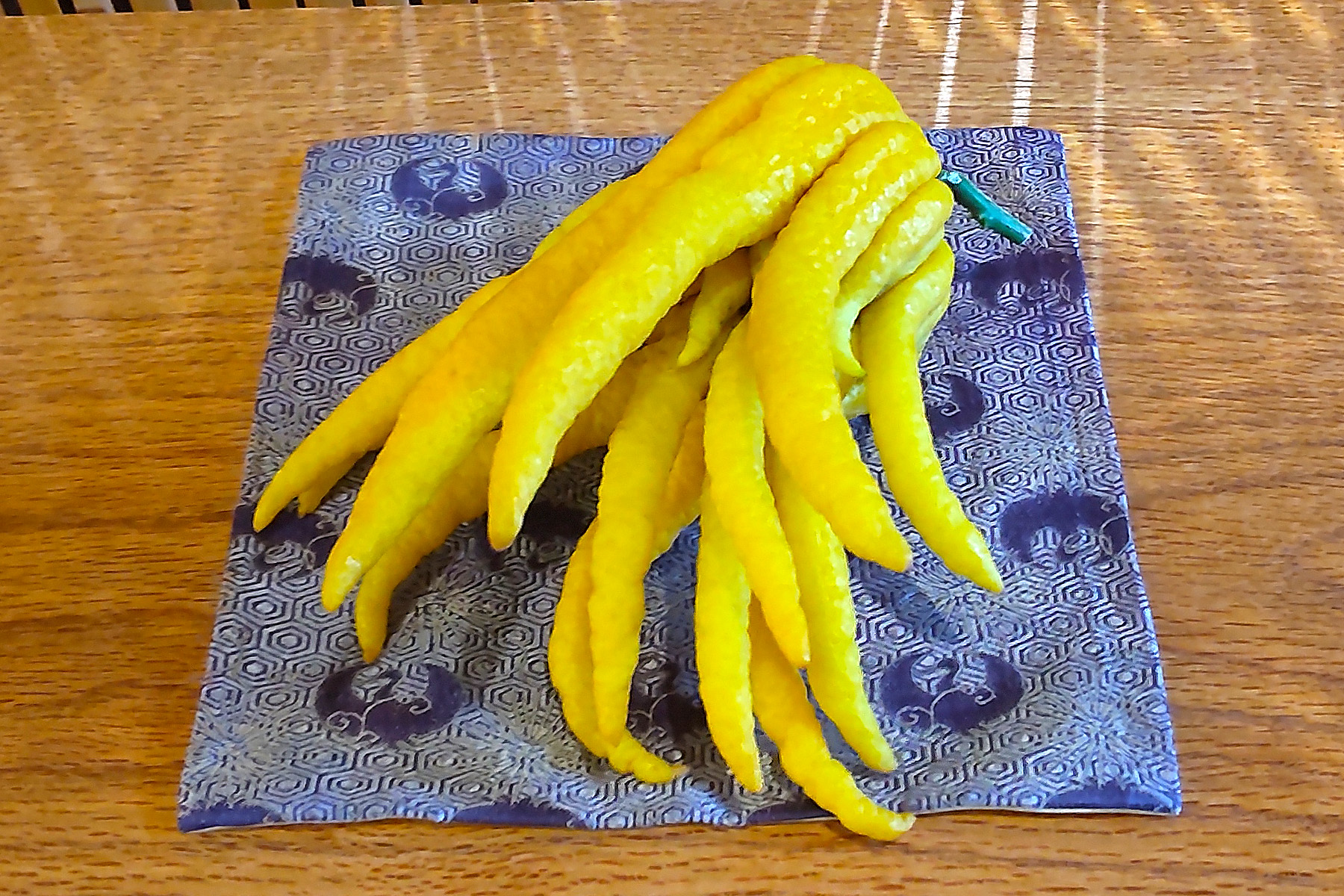 これは仏手柑(ブッシュカン)。ミカン科の植物の果実で、ユズとかカボスに近い種類のようです。加工して食用として利用される他、お茶花としても利用されます。