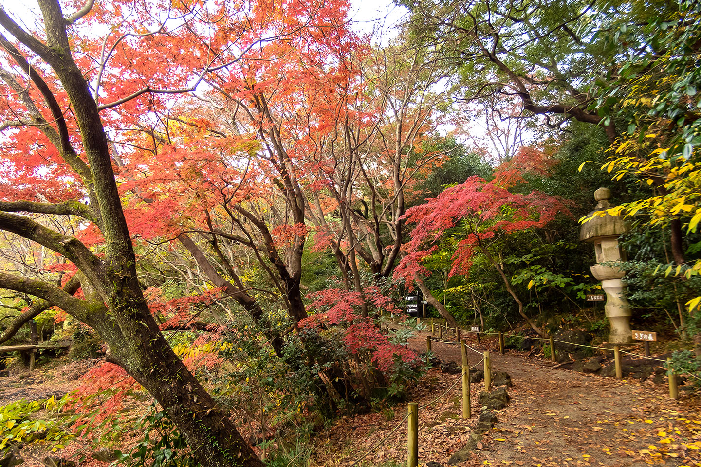 楽寿園正門前のモミジもまだまだキレイでした。園内をのぞいてみると日当たりの悪い場所のモミジも葉はまだ青々しているものもありました。紅葉のピークは過ぎていますが来週でも充分に楽しめそうです。