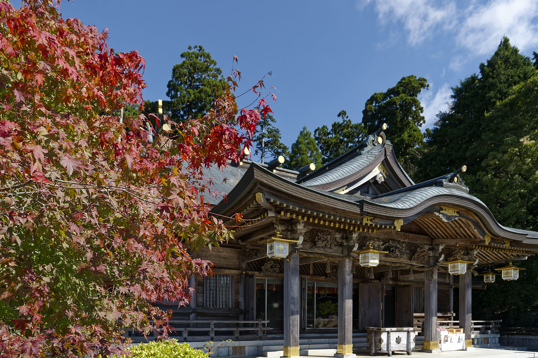 秋葉山本宮秋葉神社は浜松市天竜区のさらに山深い場所に鎮座しています。紅葉の見頃はまだ先だと予想されていましたが、今回は参拝が目的なのであまり期待はしていません。やはり参道〜境内の木々はまだほとんど紅葉していませんでした。