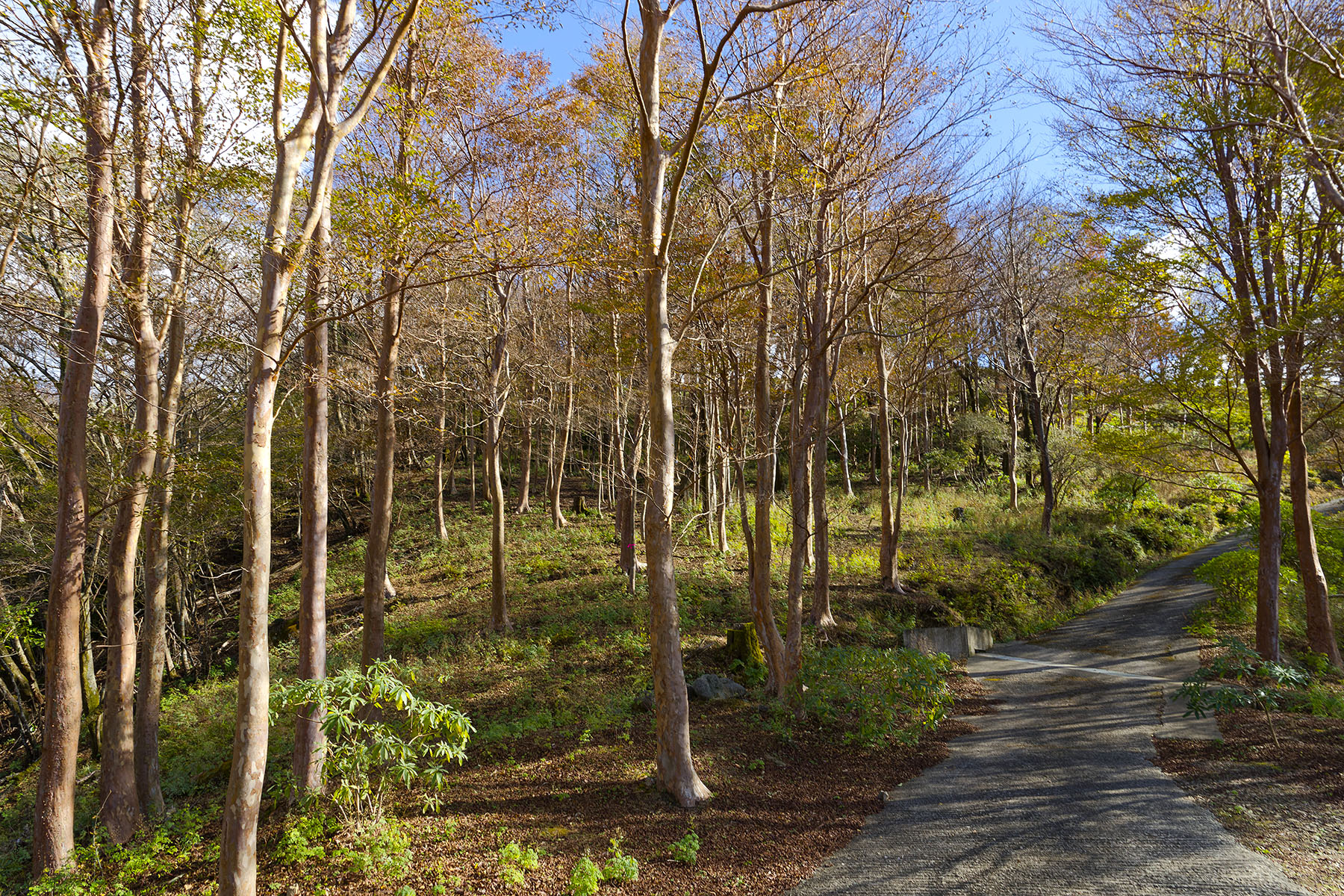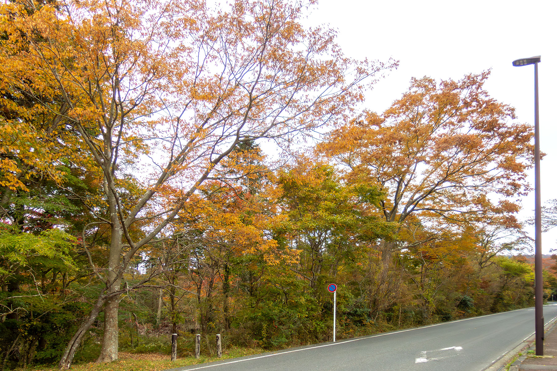 箱根ビジターセンターの駐車場前の道路。湖尻や仙石原周辺では大体こんな感じで木々が色付いています。天気が良ければもっと鮮やかに見えたと思います。帰路は乙女峠を経由したのですが、金時神社周辺でもヤマモミジの大木が見事に色付いていてドライブするだけでも紅葉狩りが楽しめました。