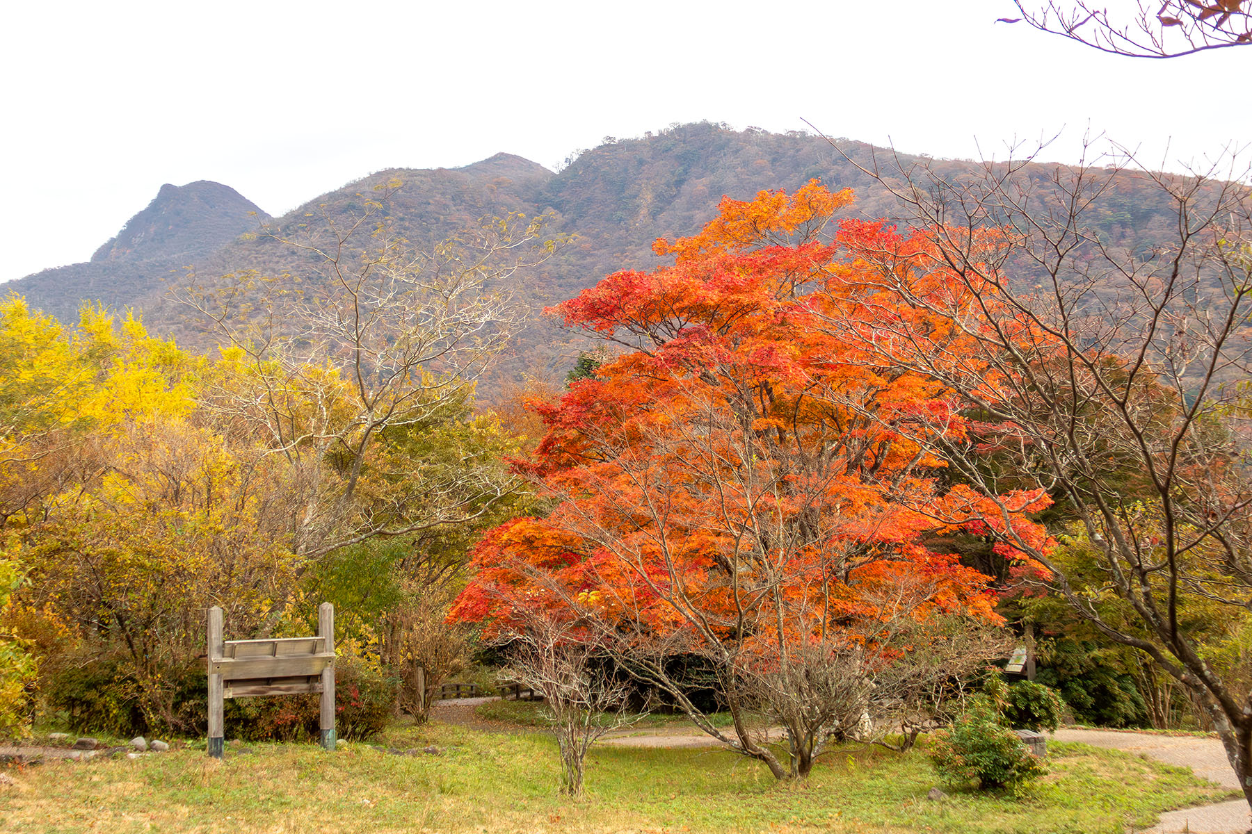 今年の8月に訪れた箱根ビジターセンター。そろそろ紅葉が始まる頃だろうということで再訪しました。湖尻峠から箱根外輪山を望むと山がかなり色付いていました。箱根ビジターセンターの周辺でも鮮やかな黄色や赤色の木々が目立ち、散策路では見事に色付いたヤマモミジがとても綺麗でした。(11月8日撮影)
