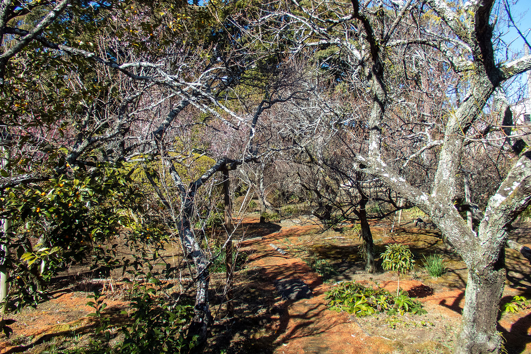 1週間くらい前にたくさんのつぼみが垂れ下がっているのを見つけ、数日前からちらほら開花し始め、現在は4〜5分咲き程度でしょうか。昨年は天候不順で一斉に花が咲かず、秋には大量の毛虫に葉が食べられて無残な状況でした。葉がほとんど落ちたあとも暖かくて冬に新芽が出てきたり数輪の花が咲いたりして春の開花を心配していましたが、今年の春は例年になく一斉に開花しています。