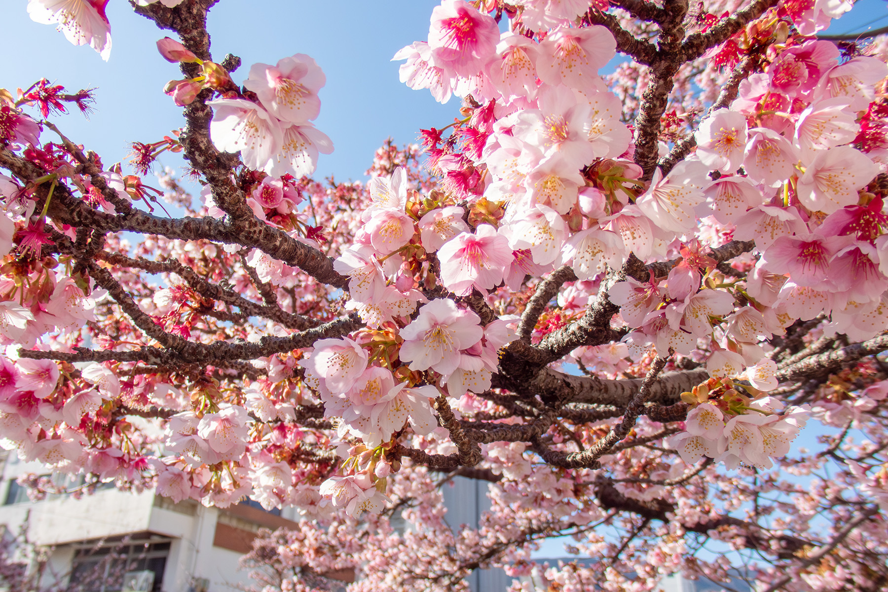 あたみ桜は河津桜よりも早く開花し、河津桜よりも淡いピンク色でとても綺麗です。